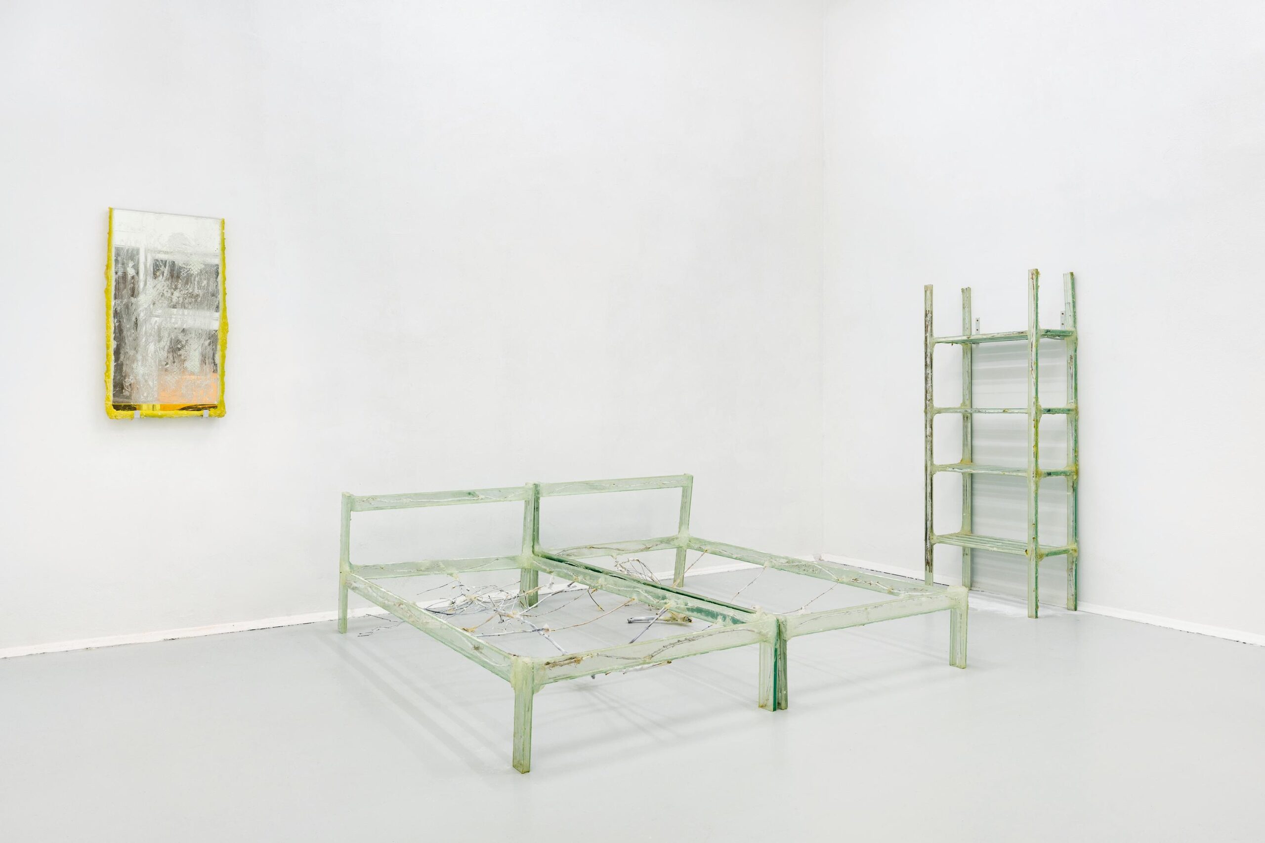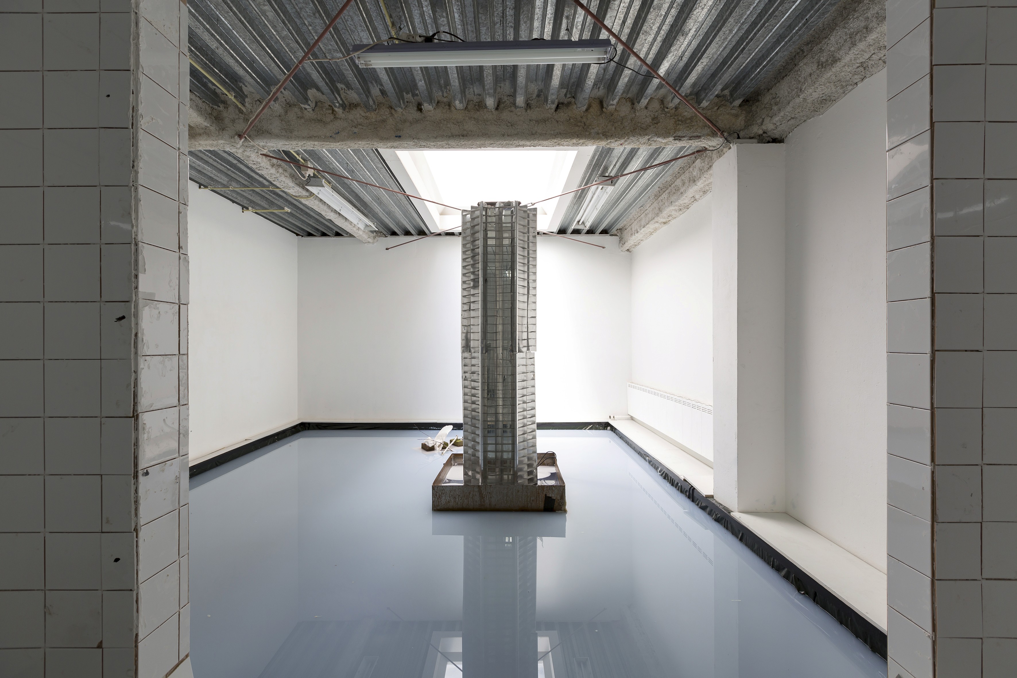 My iterative research projects consist of installations, videos, sculptures and props that sometimes function as the stage for performances. With these site-specific environments I create echo spaces that are full of repetition, dogma and correction: like a bathroom, classroom, ballet studio or autopsy theater.
